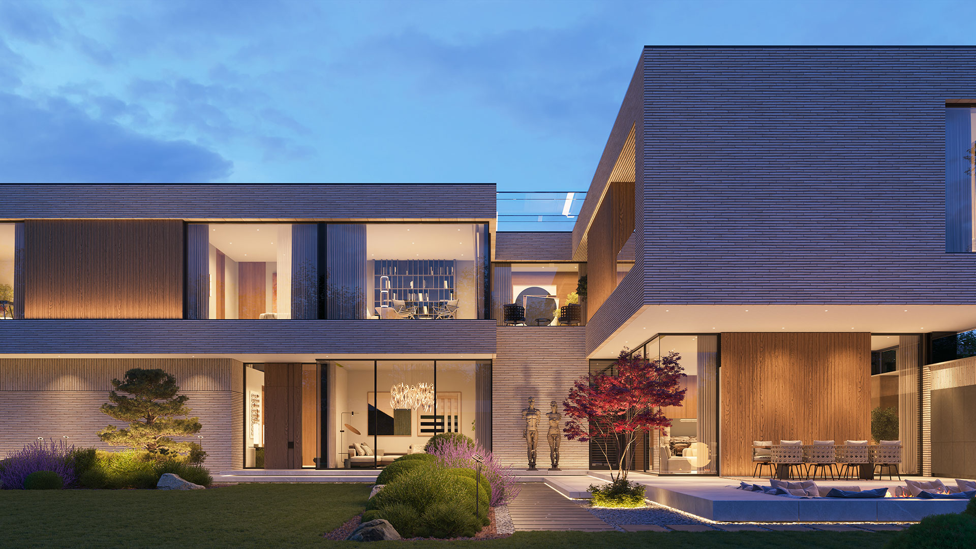 Fasada je izvedena od cigle Petersen Tegl K70 i K71, u kombinaciji sa vertikalnim panelima od veštačkog drveta Millboard Board & Batten, dok su prozori izvedeni u sistemu Burchardt’s. Ova kombinacija materijala stvara ravnotežu između savremenog karaktera i prirodne topline.