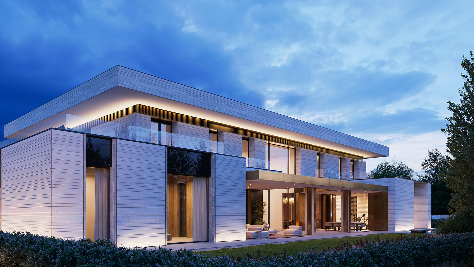 Особое внимание к деталям обеспечило многослойность и изысканность фасадного решения. В результате объект превратился в элегантную современную виллу с ярко выраженной архитектурной идентичностью и премиальным характером.